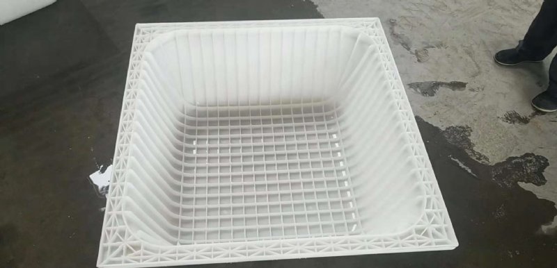 1:塑料模壳整体性好、强度高、尺寸稳定、表面硬度高、耐磨损、易清洗,每个模壳可承受1000kg以上压力,能承受各种施工荷载。