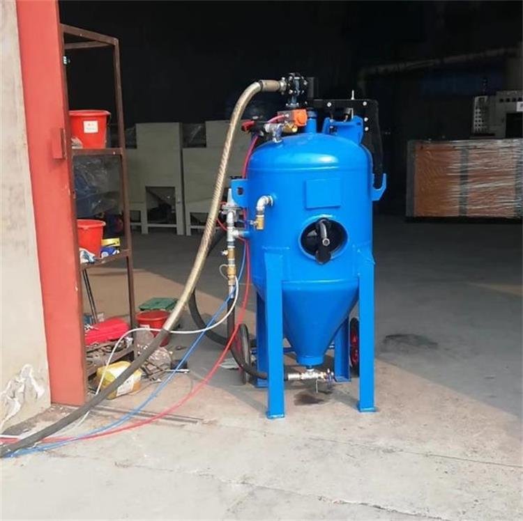1、打开加砂口,将向下进气软管从控制柜上拆除,在罐内装入水和磨料之前,用水冲洗喷砂罐内,放出冲洗的水,重新连接软管。