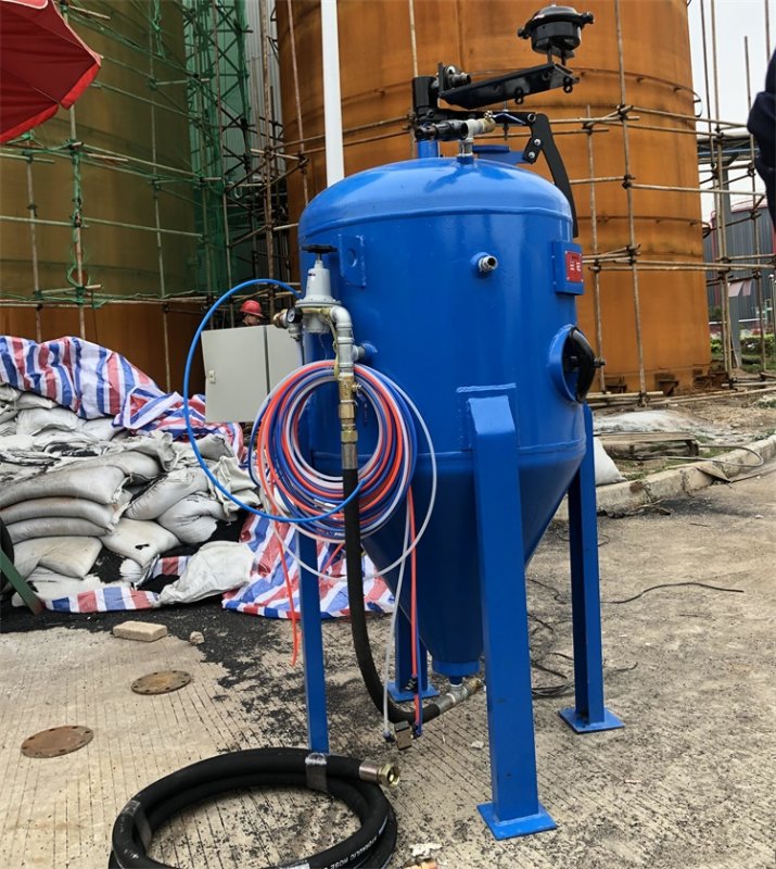 3、向喷砂罐内充入洁净的清水,水量以超过磨料 5CM 为宜。