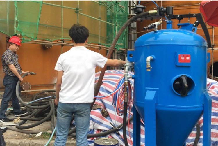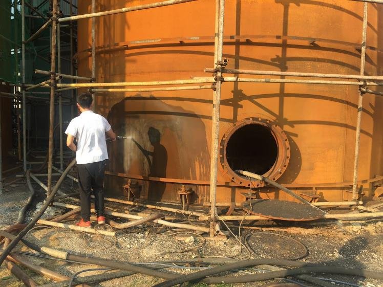 是目前市面上实用的翻新储罐的方法!他是干式除锈喷砂机的第二代!继承了干式除锈喷砂机除锈效果好!效率快等优点,解决了有灰尘扬尘的污染!在罐中加入砂与水混合可处理98%的扬尘!彻底终结了干式喷砂污染严重的问题,粉尘得到很好的控制。与现在的湿式喷砂设备不同,水喷砂机的需水量且可快速蒸发,不会造成大面积积水,喷射压力可在 0.3-0.7Mpa 之间随意调整,同样工况下,它使用的砂量仅相当于干式喷砂的五分之一,喷射出的磨料还可以回收再用,大大降低了使用费用。我公司的水喷砂机:环保清洁、用砂量少、更具经济效益,值得广大用户使用。