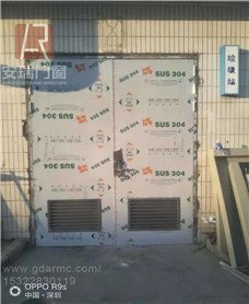门扇:采用0.8mm优质不锈钢制作,内腹填实耐温1200℃以上的阻燃隔温材料。