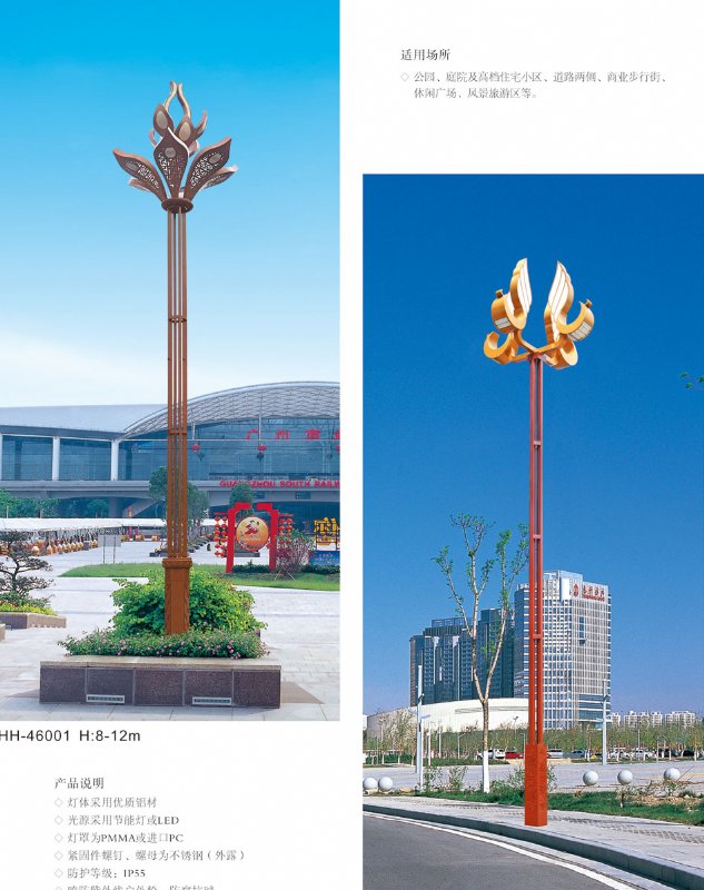 与众不同的漂亮玉兰灯大大的改进了这座大城市的外貌,照明灯具作用也考虑了群众和游人的照明灯具要求。另一方面,它也使这个城市的面貌独特,在城市的外表上显得突出,出类拔萃。灯杆配有节日气氛灯,不仅保留了玉兰灯的美丽外观,而且还可以在节日中添加和平的欢乐气氛,称得上新城区道路的一道亮丽风景线。玉兰灯的外型十分漂亮,由很多玉兰花型灯源构成,具备强劲的社会主义民主,一般安装在大中型文化艺术休闲娱乐城市广场、地下停车场、市政工程主干路。