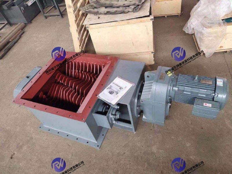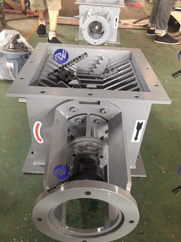 块料破碎阀可水平或垂直安装在卸料出口处卸料设备的入料端,如流量调节阀或气动切断阀的前部。当物料中出现较大块状物时,可立即将其破碎,以防止这些大块物料堵塞卸料阀门的通道,保证通畅卸料。破碎阀的转子上安装有放射状布置的破碎爪,拨动块料物料通过栅格并将其破碎。