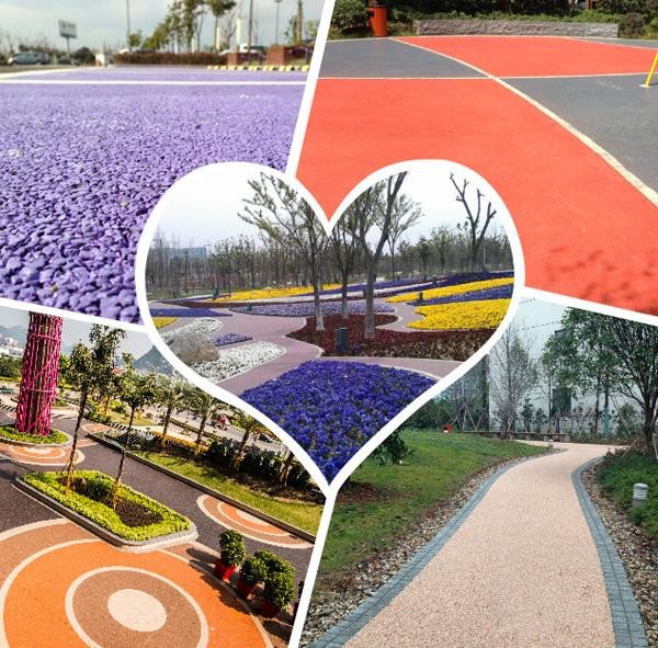 胶粘石不仅指透水胶粘彩石、透水石,而且也指彩色透水混凝土、彩色透水地坪。胶粘石路面使用的原材料无..
