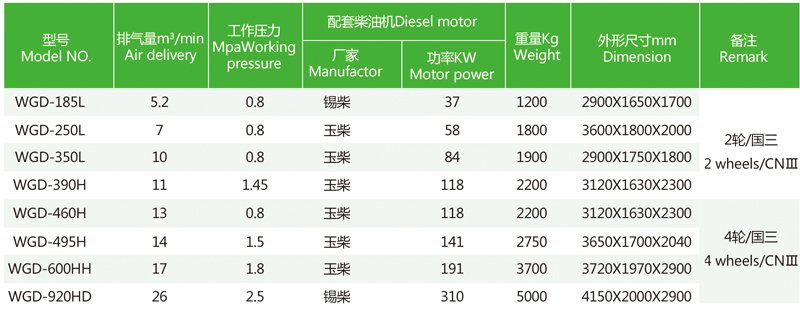 2、为延长机器使用寿命,移动式空气压缩机应停放在通风良好、干燥、空气清洁而灰尘少的地方。