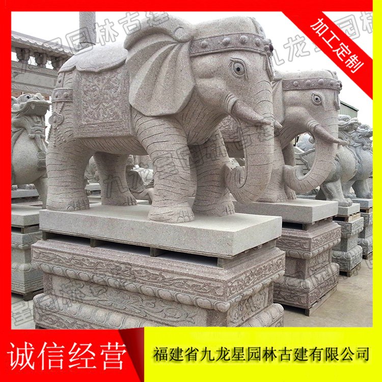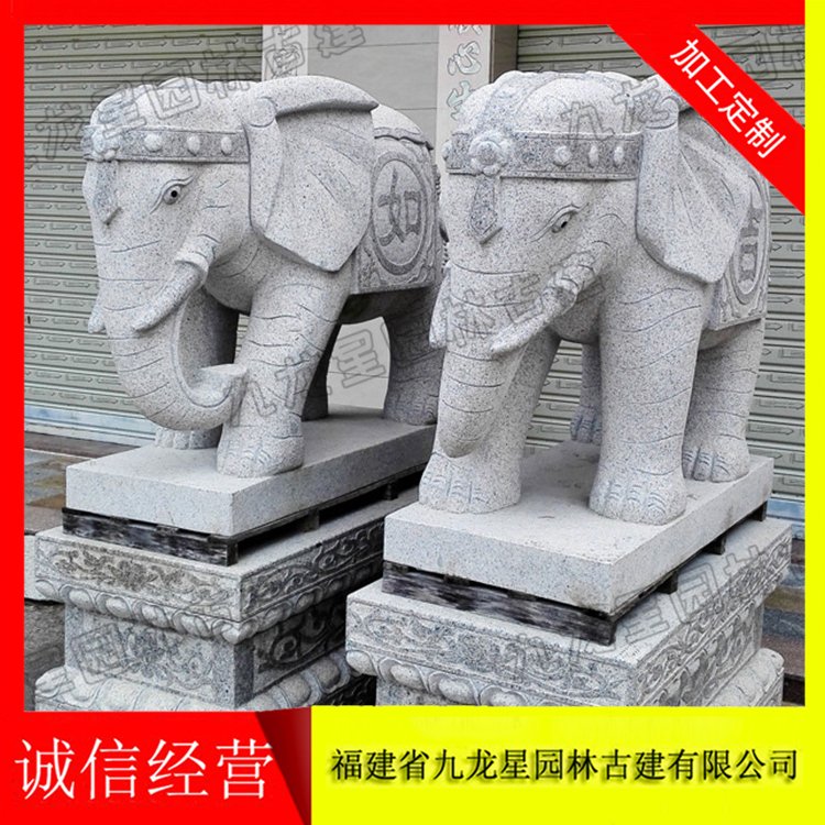 石雕大象定做的大象石雕摆放有不少要求,为保障有良好的功效,从古zhi今来看,石雕象的摆放都是以一对进行。yi般来说可以先考虑一雌一雄的摆放,从位置上看,要懂的区分左右,通常是按照“男左女右”的习惯,也就是说将雄性象摆放在左侧,而雌性象摆放在右侧,在位置上是不能够错乱,以免影响到石雕象的作用。 - 福建九龙星园林古建有限公司