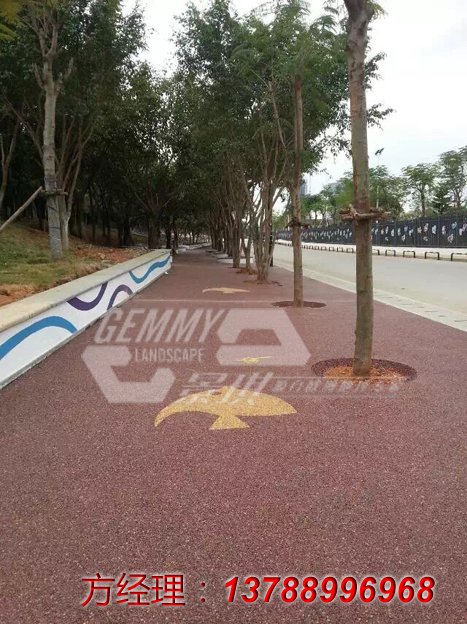 园林景观色路面有很多种建造方法,主要作用是色彩醒目提示、色彩功能分区、增加路面抗滑值,从而达到美化城市环境,以及保障行车安全的目的。彩色防滑路面的施工工艺快捷方便,确保建造质量的核心技术是路面*彩色胶粘剂,要具备粘结强度大,干燥速度快,强度上升快,冲击韧性好,户外耐候性好等几个特点,并且对混凝土、沥青、石料、钢铁等有很高的粘结强度。