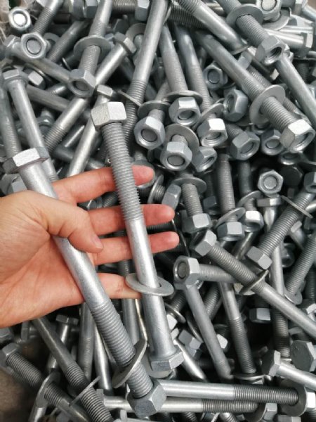 河北邯郸永年大洲紧固件厂生产销售热镀锌螺栓,国标4.8级六角螺栓和8.8级护栏螺栓,现货护栏螺栓的规格有m16,m20等型号有35mm,40mm,42mm,45mm,50mm,55mm,150mm,170mm,180mm,护栏螺栓头部是半圆头的也叫蘑菇头螺栓,表面是镀锌的,材质是q235钢和45#钢,国标4.8级和国标8.8级的性能级别,使用在波形板的安装上,高速公路,国道省道山路的两旁护栏都有使用,热镀锌螺栓六角螺栓有普通的和高强度的,都是现货,镀锌后就可发货使用,热镀锌六角螺栓使用很广泛,规格型号也比较多,我们厂定做各种异型螺栓,销售高速公路护栏板配件小件。