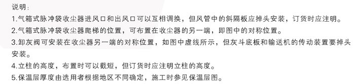 5、收尘器根据不同规格,可以是整机发运,或以解体形式发运,其基础设计由选用者负责。