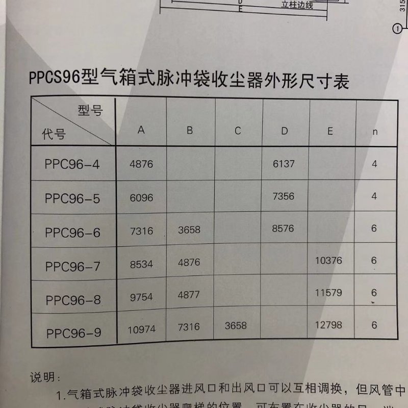 本系列收尘器为户外式由不同室数和每室的不同袋数,组成多种不同规格。每室的袋数有32、64、96和128袋四种。全系列共有33种规格,滤袋直径均为130mm,滤袋长度有2450mm和3060mm两种。本系列收尘器能负压或正压操作,其本体结构无任何改变。其收尘效率可达99.9%以上,净化后气体的含尘浓度100mg/m3 (标),本系列收尘器的主要技术性能分别见附表,本系列收尘器如用于寒冷地区,当室外采暖计算温度时≤-25°C时,需要增设加热装置,收尘器的壳机也要增设保温层。