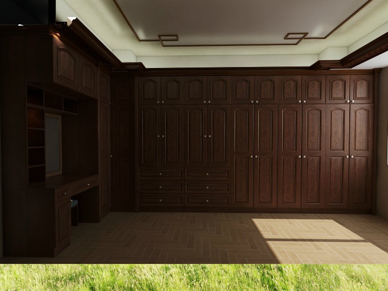 3、造型精美:实木衣柜可以实现一些板木衣柜不能实现的造型,诸如雕花等;