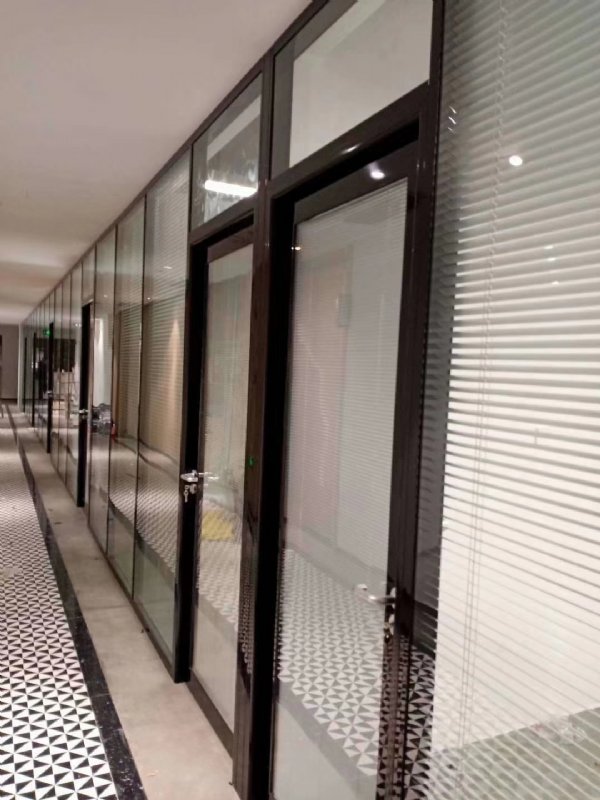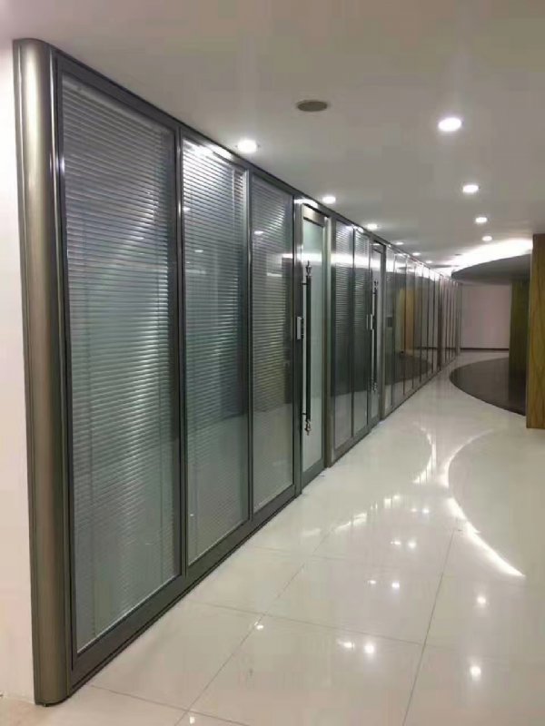 在深圳做的玻璃隔断的款式主打是双面玻璃中间带百叶窗高隔断的,也是双层玻璃夹百叶窗在玻璃里面,立柱安装旋钮..