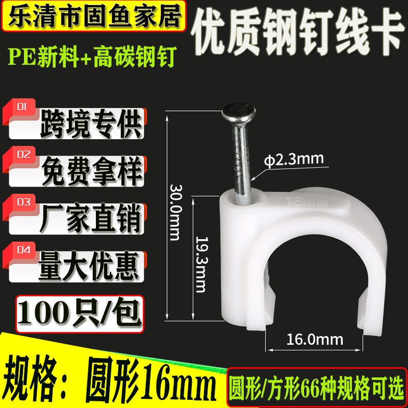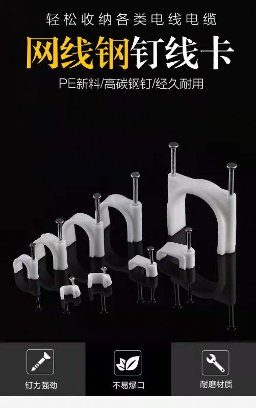 3. 产品用途:一般室内配线固定电线用,大一些的线卡有些用于固定电缆管,水管等。