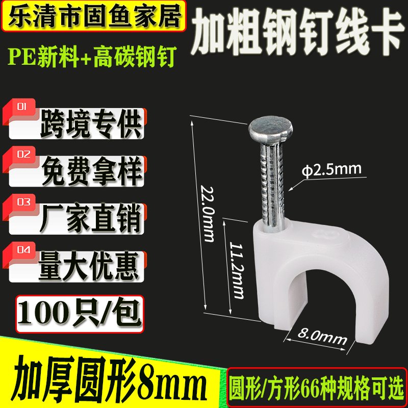 PE新料圆形方形高碳钢钉线卡电线卡钉钢钉线卡子线卡扣固定线扣