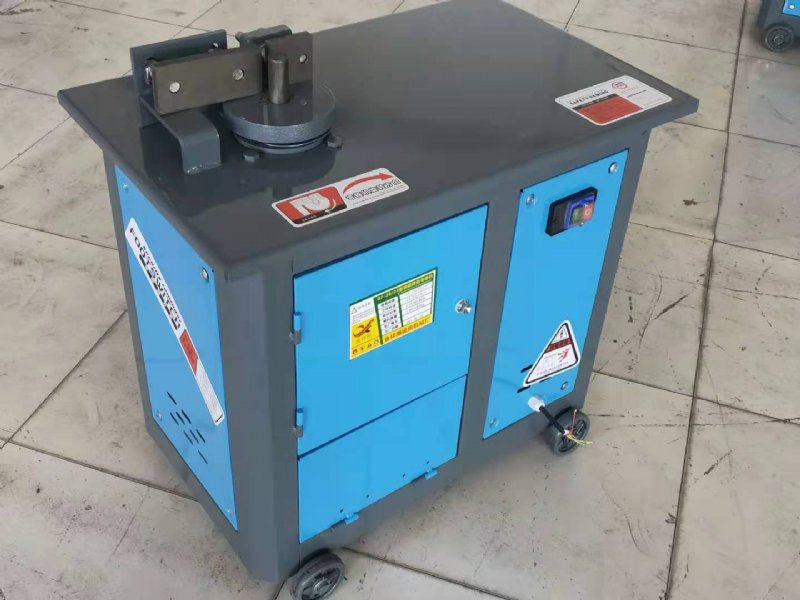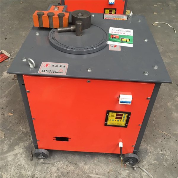 钢筋圆钢弯箍机为双主动轮,装配有预弯装置,可顺、逆时工作,更换主动轮后可弯曲扁钢、方钢、方管、矩形管。