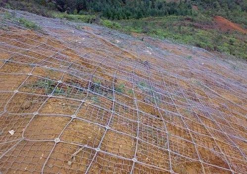 主/被动防护系统是用以钢丝绳网为主的各类柔性网覆盖包裹在需防护的斜坡或岩石上,以限制坡面岩土体的风格的分化剥落或破坏以及危岩崩塌(加固作用),或者将落石控制于一定范围内运动(围护作用)。