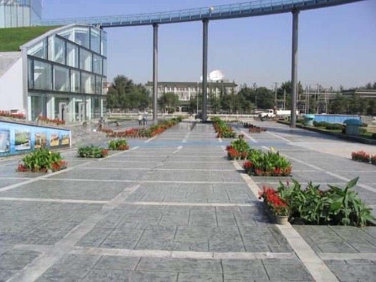 2. 用硬化剂材料制作的彩色压模地坪具有抗耐磨、防滑、抗冻、不易起尘、易清洁、高度度、耐冲击、且色彩和款式方面有广泛的选择性、灵活性、成本低和优质环保等特点,是目前园林、市政、停车场、公园小道、商业街区和文化娱乐设施领域的理想选择。