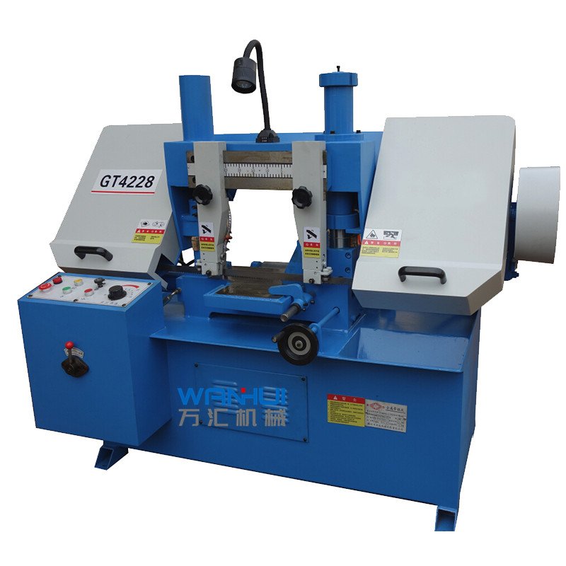 金属带锯床是一种以金属锯条作为切削工具,并用于切割金属材料的锯切设备,主要用于黑色金属的方料。圆料及各种型材的切割,亦可用于切割有色金属及非金属材料。由于带锯切口窄,切削效率高,因此能耗小,材料浪费少。是一种具有显著节能,节材效果的高效切割设备。双立柱带锯床主传动采用蜗轮箱变速,进给采用液压传动,工件夹紧采用手动和液压混合式夹紧,具有结构紧凑,操作维修方便等特点。 - 山东万汇数控机床有限公司