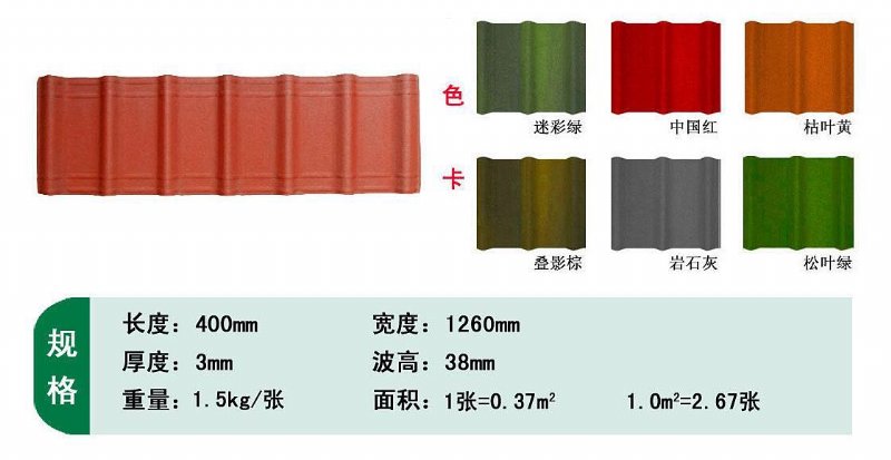 1、重量轻,每平方米波形瓦重量仅为3.5公斤;