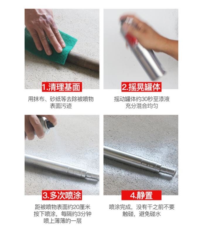 6.用后存放前须倒置罐体,按下喷头约3秒清洗喷嘴余漆,防止堵塞。