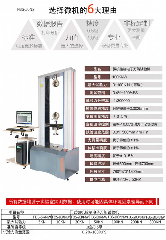 万能试验机用于各种金属材料的拉伸、压缩、弯曲及剪切试验,亦可用作塑料、混凝土、水泥等非金属材料的压缩试验,增加简单附件,可完成胶带链条,钢丝绳、电焊条、瓦及构件的多种性能试验。本机采用油缸下置式、高度低、重量轻,尤其适用于工程施工部门。各种金属材料的拉伸、压缩、弯曲及剪切试验,亦可用作塑料、混凝土、水泥等非金属材料的压缩试验 基本能夹住的都能测,可依据您的试验力、破坏强度,来选择想应的机型.