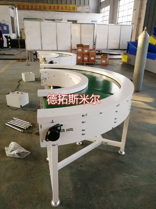 转弯皮带机功能特点:本设备适用于各种流水作业的生产厂家,中小型物品的物流输送,动力系统采用变频调速系统,性能稳定、安全可靠、操作简单。线速度一般在三十米每分 - 德拓斯米尔自动化设备(德州)有限公司