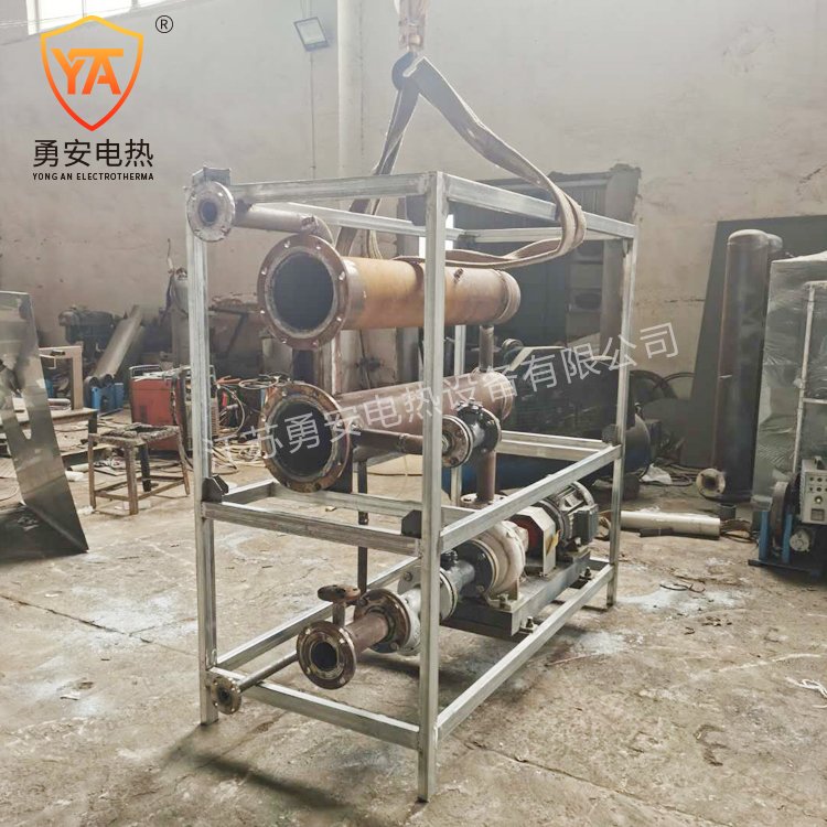 导热油炉是一种消耗电能转换为热能,来对需加热物料进行加热。在工作中低温流体介质通过管道在压力作用下进入其输入口,沿着电加热容器内部特定换热流道,运用流体热力学原理设计的路径,带走电热元件工作中所产生的高温热能量,使被加热介质温度升高,电加热器出口得到工艺要求的高温介质。电加热器内部控制系统依据输出口的温度传感器信号自动调节电加热器输出功率,使输出口的介质温度均匀;当发热元件超温时,发热元件的独立的过热保护装置立即切断加热电源,避免加热物料超温引起结焦、变质、碳化,严重时导致发热元件烧坏,有效延长电加热器使用寿命。
