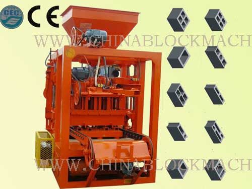 该机型手动推拉模、手动下料,正常生产人工5人、1人开搅拌机、1人开主机、1人上料、2人出砖比QT4-24B出砖稍慢点。
