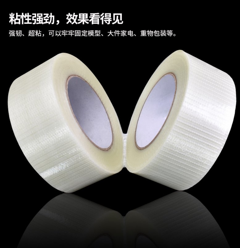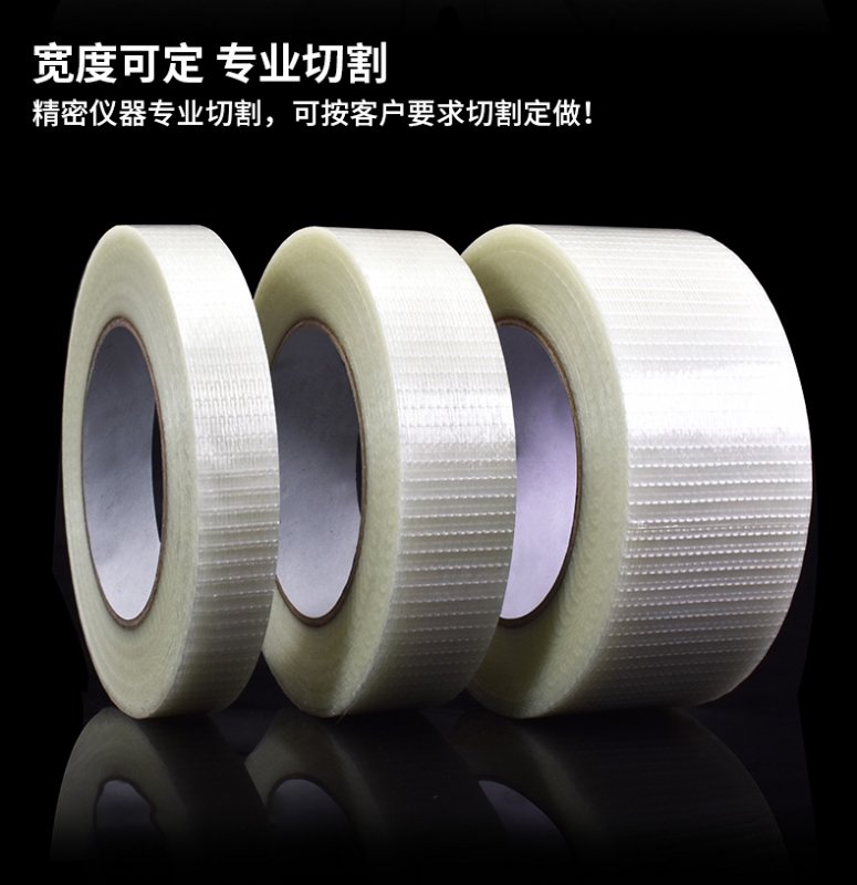 性能优良:纤维胶带是以PET为基材,内有增强的聚酯纤维线,涂敷特殊的压敏胶制作而成
