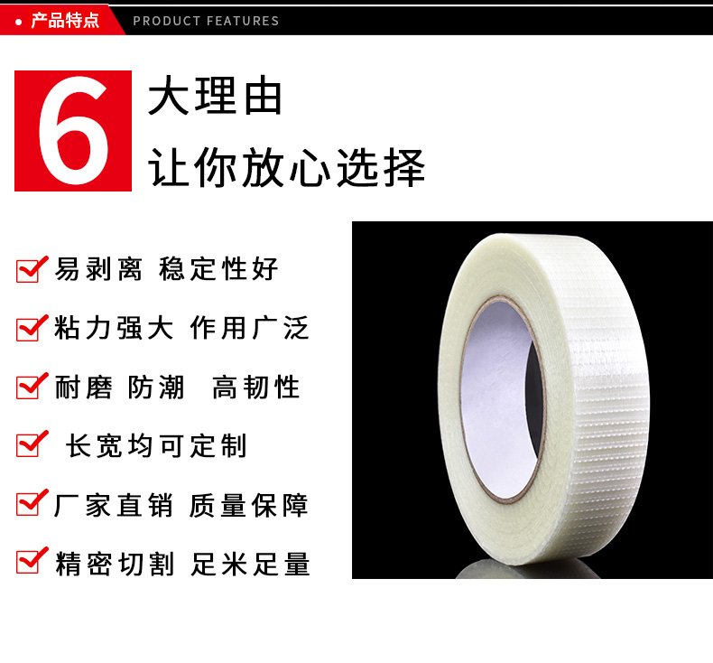 胶带绝不脱胶,经玻纤胶带贴过的一般金属或塑料表面上不会遗留胶渍。