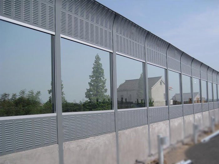 公路声屏障组成:主要由钢结构立柱和吸隔声屏板两部分组成,立柱是声屏障的主要受力构件,它通过螺栓或焊接固定在道路防撞墙或轨道边的预埋的钢板上;吸隔声板是主要的隔声吸声构件,它通过高强弹簧卡子将其固定在H型立柱槽内,形成公路声屏障。