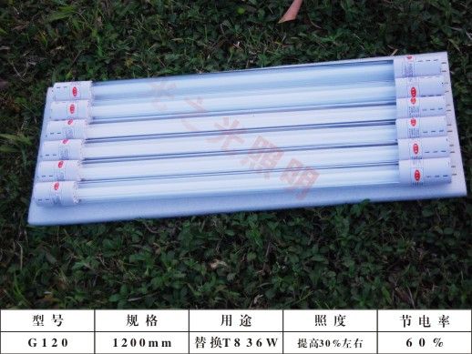 如目前市场上广泛流行的T5支架灯具,LED灯管(18w-20w),就是利用提高了光效降低实际功率达到节能的目的,T5支架灯具节电率一般在30%-40%之间,LED灯具在节电率一般在50%-60%之间。