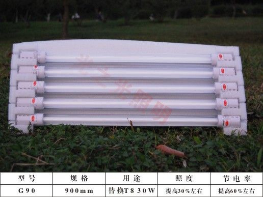 管中管节能灯(16W-21W)同时则利用了提高光效和反射两个原理 ,所以在亮度提商30%左右的前提下,仍可实现节电60%左右。