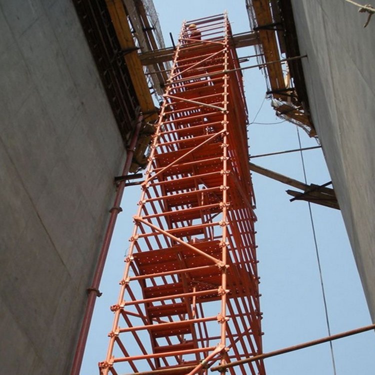 优点:桥梁施工爬梯设计更简单合理,结构更稳定,受力更强,节省用料,装拆快捷,省时省工,