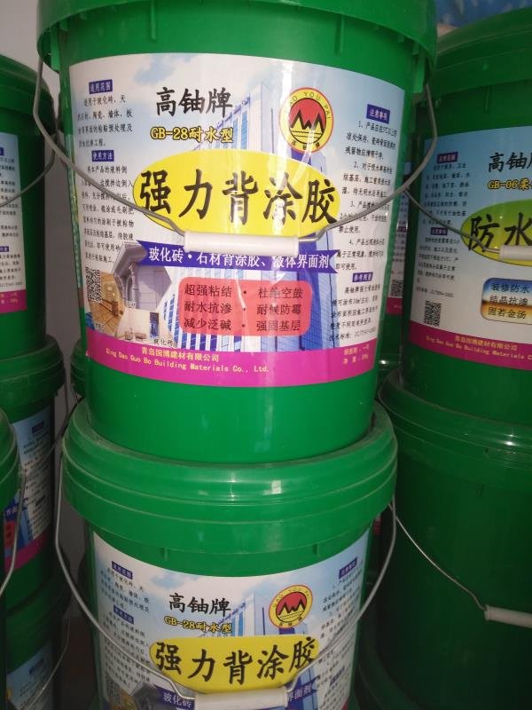 高铀牌背覆胶XZJ-912为双组份有砂型产品。由粉料和液料两部分组成。将本品涂刷与被粘物表面后,可以大大增加被粘物表面的摩察系数,并显著提高了砂浆与被粘物界面的粘合力,从而降低了因砂浆干缩而造成的被粘物空鼓或脱落的现象。