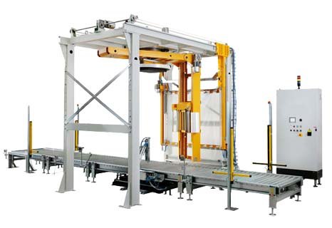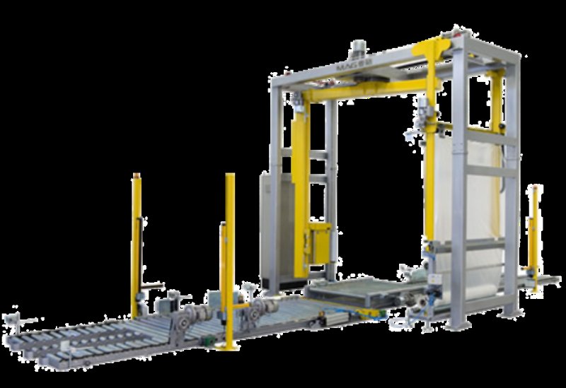 自动预拉伸薄膜缠绕机已码垛托盘周围进行缠膜,缠膜后既能有效提高货物的包装质量,又能防止货物在转运和运输过..