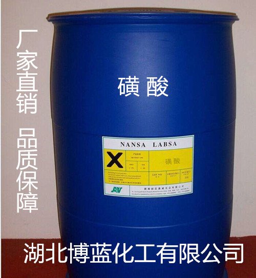 外观特性:磺酸外观为无色或浅黄透明粘稠油状液体,低温下为固体。熔点20℃,热稳定性较好,,溶于水、醇。