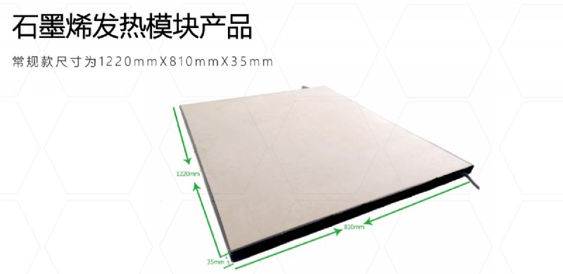 石墨烯发热模块长*宽*高1220*810*35mm,仅3.5公分高度,不占层高,单位功率250瓦,正常使用能耗:0.025度电/平方/小时;适用于家庭住宅装修地暖,排屋,别墅地暖,复式房地暖装修,酒店客房地暖,民宿客房地暖,会所,瑜伽房,高速公路收费岗亭等场所的冬季采暖。铺好的模块地暖上面直接铺饰面层:地砖、大理石和实木地板,复合地暖,PVC地胶以及石塑地板。 - 上海建滔新材料科技有限公司