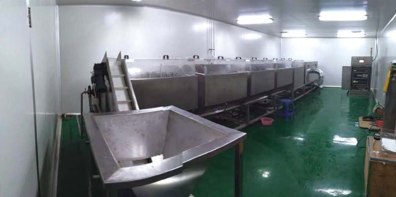 大型超声波清洗联动线清洗联动方式:物料运输传送带,机械物料丝杆运转配合