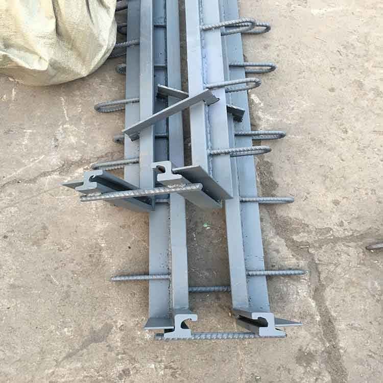 组合模数式桥梁伸缩缝:即GQF-MZL型数模式桥梁伸缩缝装置,适用于伸缩量80mm以上的桥梁,其特点是:由边梁、中梁、横梁、位移控制系统、密封橡胶带等构件组成的系列伸缩缝。该伸缩缝的承重结构和位移控制系统分开,二者受力时互不干扰,分工明确,这样既保证受力时安全,又能达到位移平均,使所有中梁在一个位移控制箱内均支承在统一根垂直横梁上的传统作法,这样对大位移量伸缩缝非常有利,减少了横梁数目,使位移控制箱体积减小到*小范围,节约了钢材。该结构还克服了斜向支承式伸缩缝要求加工和组装精度相称高的苛刻前提,否则四连杆结构极易泛起自锁现象,影响伸缩自由和不易保证位移平均的弊病。该结构各连接处均采用既能滚动又能滑动结构。所以,对弯、坡、斜、宽桥梁适应能力强,可知足各种桥梁结构使用要求。