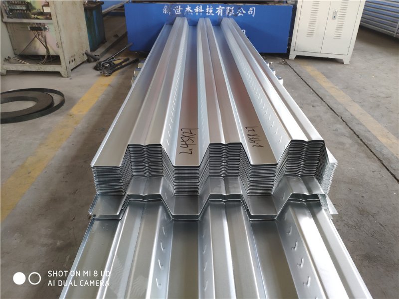 闭口楼承板特点: 1、 强劲的混凝土握裹:抗剪特殊设计的闭口肋型和腹板上的嵌扣,提供钢承板和混凝土间非..