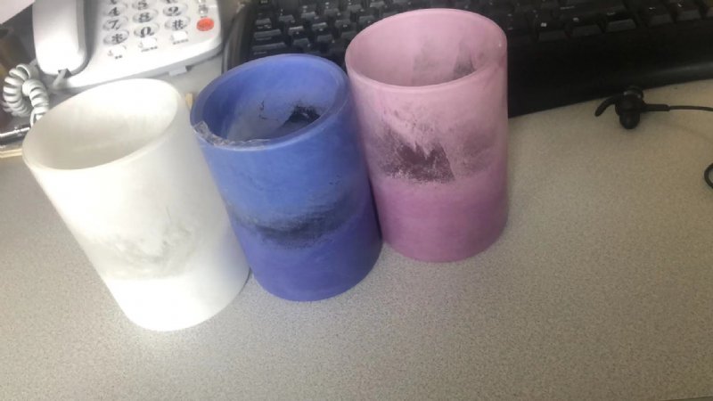 用吹管将熔融玻璃拉出,沾上少许色料,略吹膨胀,再重回坩埚中沾包一层热玻璃膏,再藉由用口吹旋转操作成型,退火降温处理后即可成为带雪花、线条状的大理石纹路效果的各色装饰玻璃。