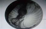 先用铁棒前端的挑料头,挑沾玻璃膏,将云彩粉用筛网(40-60目)撒于玻璃膏上,再重回坩埚中沾覆一层热玻璃膏,经由离心成型。此时云彩粉已融入热玻璃内,待退火降温后即可形成丝状云彩效果的玻璃。