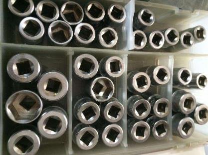 套筒扳手一般称为套筒:它是由多个带六角孔或十二角孔的套筒并配有手柄、接杆等多种附件组成,特别适用于拧转地位十分狭小或凹陷很深处的螺栓或螺母。套筒有公制和英制之分,套筒虽然内凹形状一样,但外径、长短等是针对对应设备的形状和尺寸设计的,**没有规定,所以套筒的设计相对来说比较灵活,符合大众的需要。套筒扳手一般都附有一套各种规格的套筒头以及摆手柄、接杆、万向接头、旋具接头、弯头手柄等用来套入六角螺帽。套筒扳手的套筒头是一个凹六角形的圆筒;扳手通常由碳素结构钢或合金结构钢制成,扳手头部具有规定的硬度,中间及手柄部分则具有弹性。