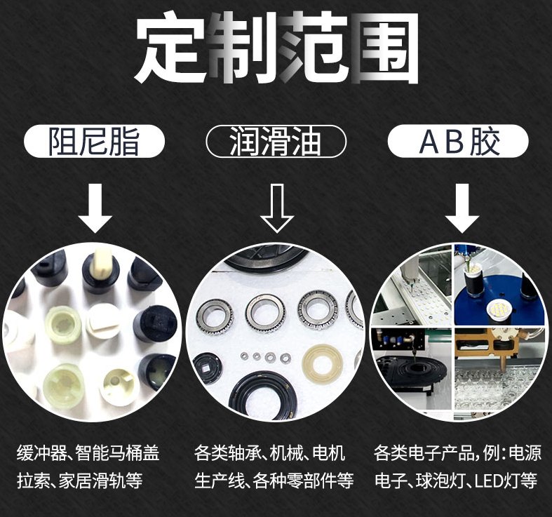 该设备采用柜式移动式设计,外观美观,操作简单,移动/固定方便,定量精准,使用寿命长,是缓冲器、智能马桶盖板、拉索、家居滑轨等生产厂家的不二之选。