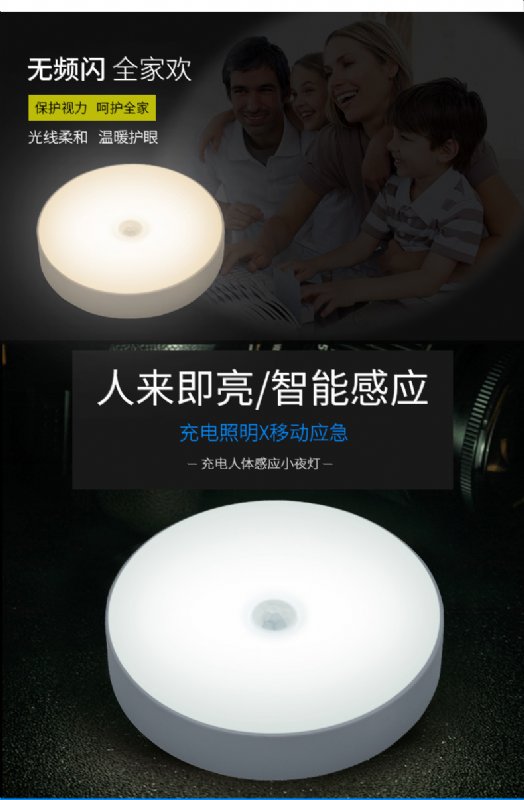 这款可充电的人体感应小夜灯,可以放置在入户门口,床头,卫生间,走廊处。