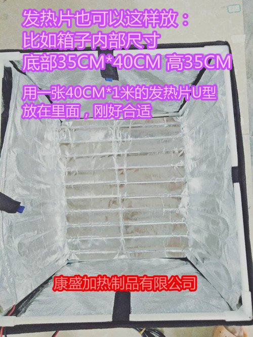 保温箱里面如何购买尺寸:一般的外卖箱,美团,饿了么,泡沫箱都可以使用,如果箱子高度不超25CM,可以购买一张发热片放在箱子底部就可以了,如果箱子大的,可以购买一张长方形的U型放在箱子里面,保温效果就很好了,比如:箱子内部尺寸长宽高35*45*30的。可以购买一张45*80的尺寸,或者40*80的尺寸,就可以了