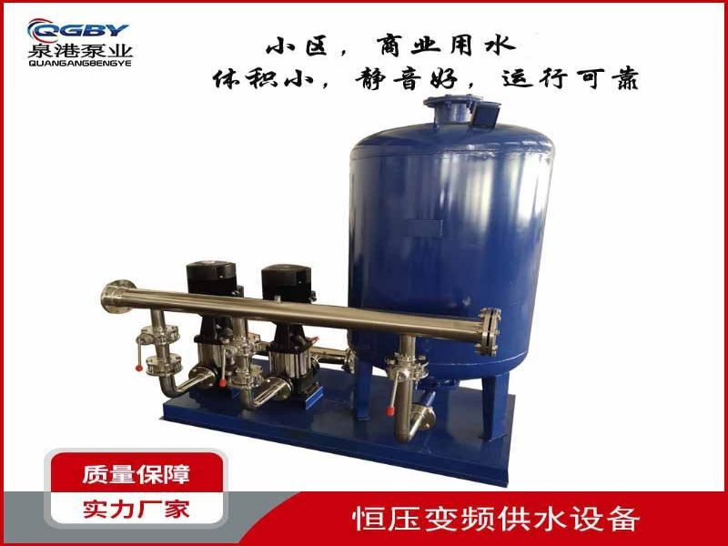 恒压变频泵不少于2台,至少设置一台泵作为备用泵。选择稳流罐类型时,稳流罐容量不得小于1分钟(如有特殊要求,可增加设计流量);选择低位不锈钢水箱时,不锈钢水箱的有效容量应为1-2小时的大小时流量。如果选择高位水箱,水箱的调节容积不得小于30分钟的大流量。 - 上海泉港泵业制造有限公司