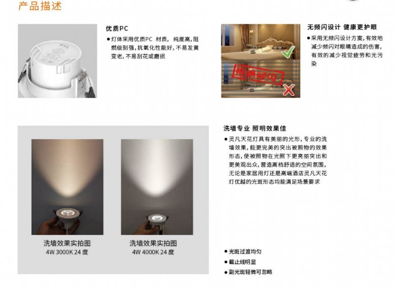 - 梵立芯照明生产暗装内嵌led射灯开孔尺寸55-140mm