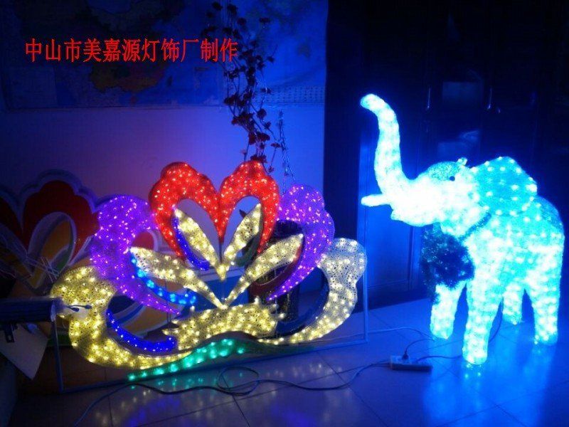 除了上述溶洞灯光外,我公司生产LED造型灯种类多,有路灯杆装饰的造型灯,庭院造型的,动物造型的,生肖造型的,艺型造型灯,田园造型灯,圣诞系列造型,春节亮化造型灯以及墙体,商场灯饰画等。 - 中山市美嘉源灯饰厂